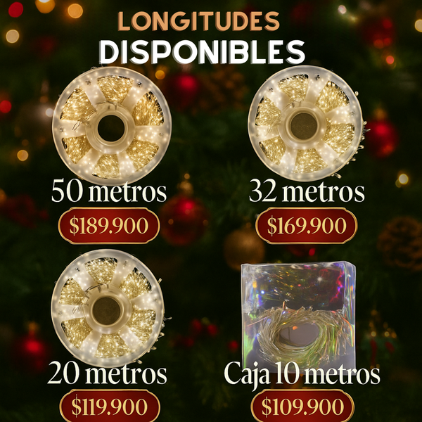 Decora a tu gusto con Carretes de Luces Hada en 50 m, 32 m, 20 m y Caja 10 m. Calidad, brillo uniforme y precios claros para comprar sin dudas.