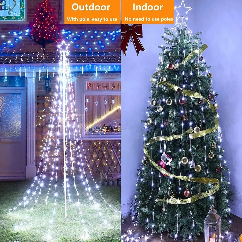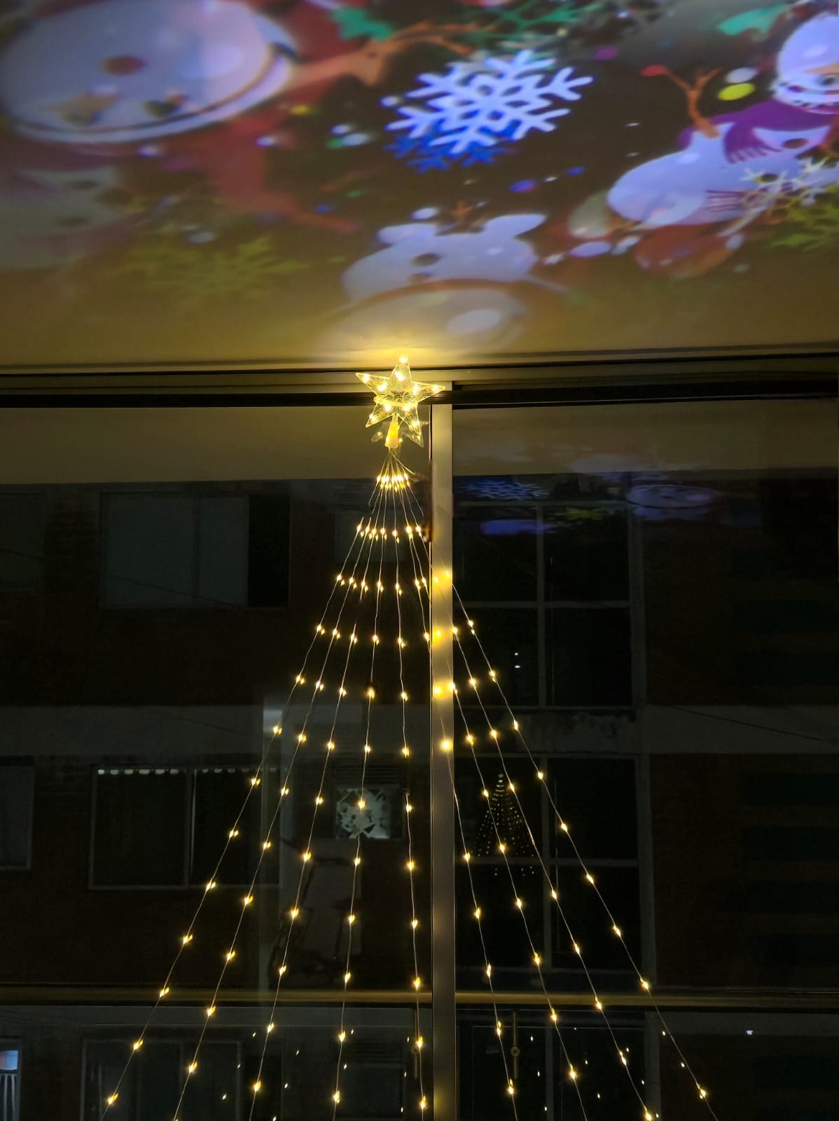 Transforma cualquier pared, ventana o árbol en un rincón mágico. Nuestro árbol luminoso LED con estrella (2 m de caída · 9 tiras) se instala en segundos, funciona por USB. Ideal para interiores y exterior protegido.